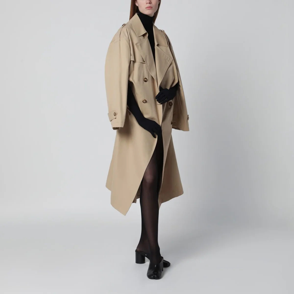 Trench lungo di MM6 Maison Margiela in twill di cotone beige