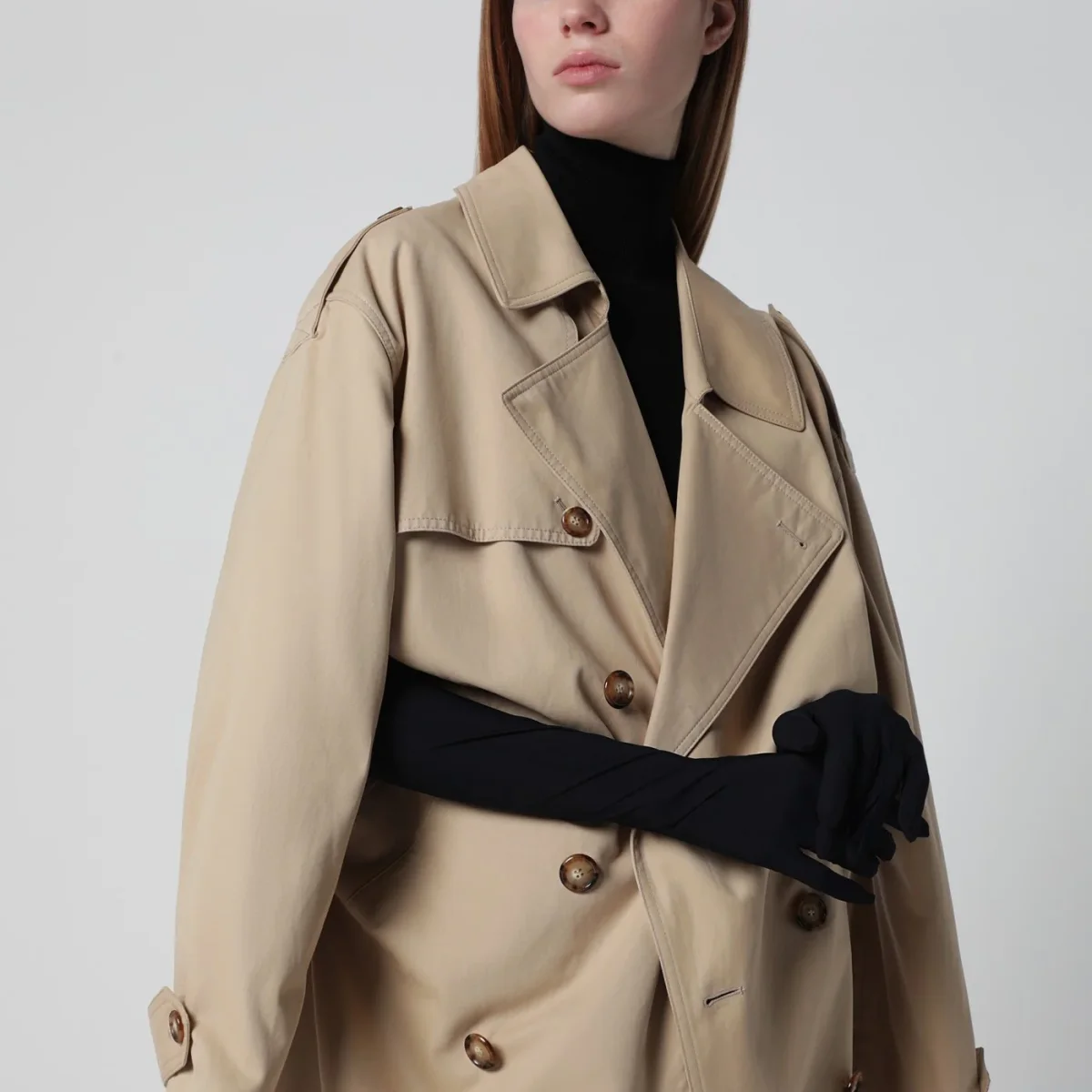 Trench lungo di MM6 Maison Margiela in twill di cotone beige• Colletto a camicia• Chiusura doppiopetto con bottoni• Chiusura in vita con dettaglio guanto