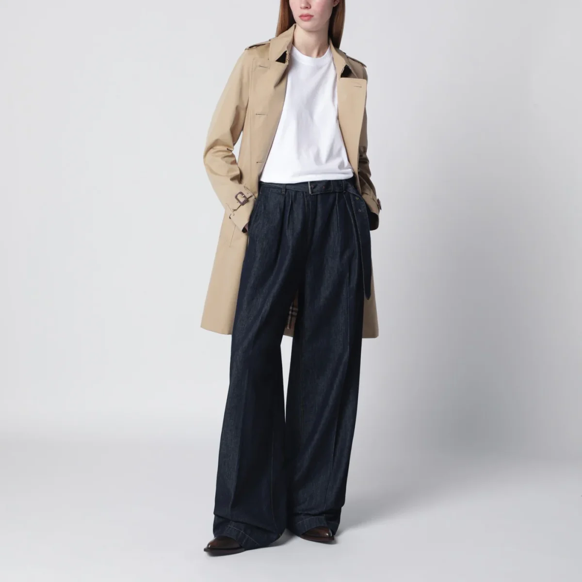 Trench di Burberry in gabardine di cotone color miele• chiusura doppiopetto con bottoni• collo con chiusura a gancio• cinturino sottogola• spalline• cintura con fibbia a forma di B• tasche laterali con bottoni• polsini con cinturino• spacco posteriore• fodera con stampa Check