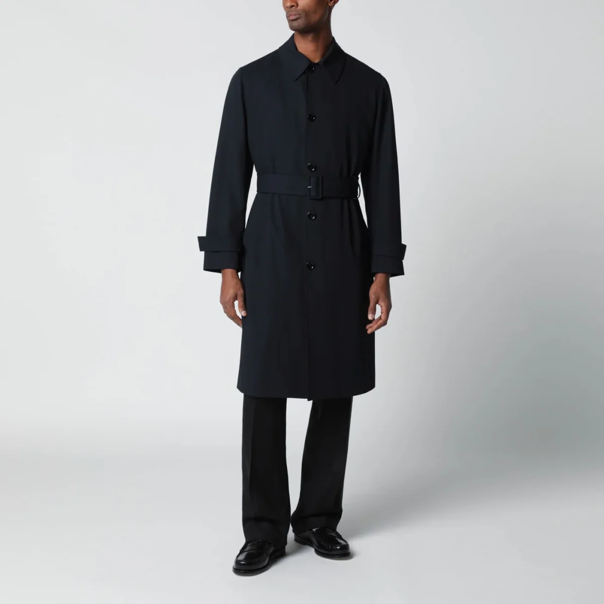 Trench monopetto di Lardini in lana vergine blu