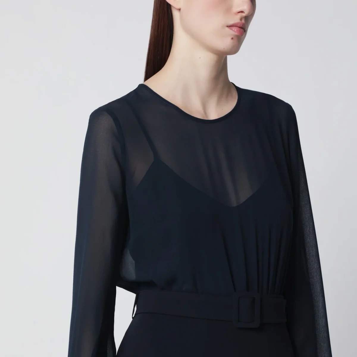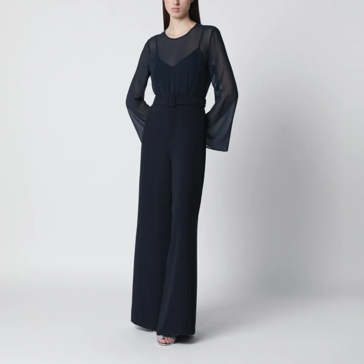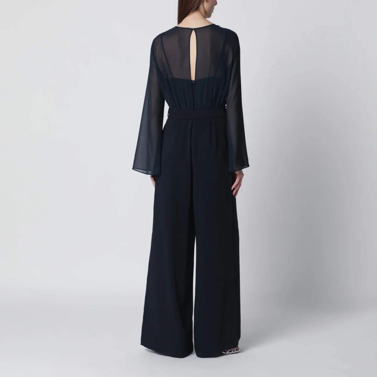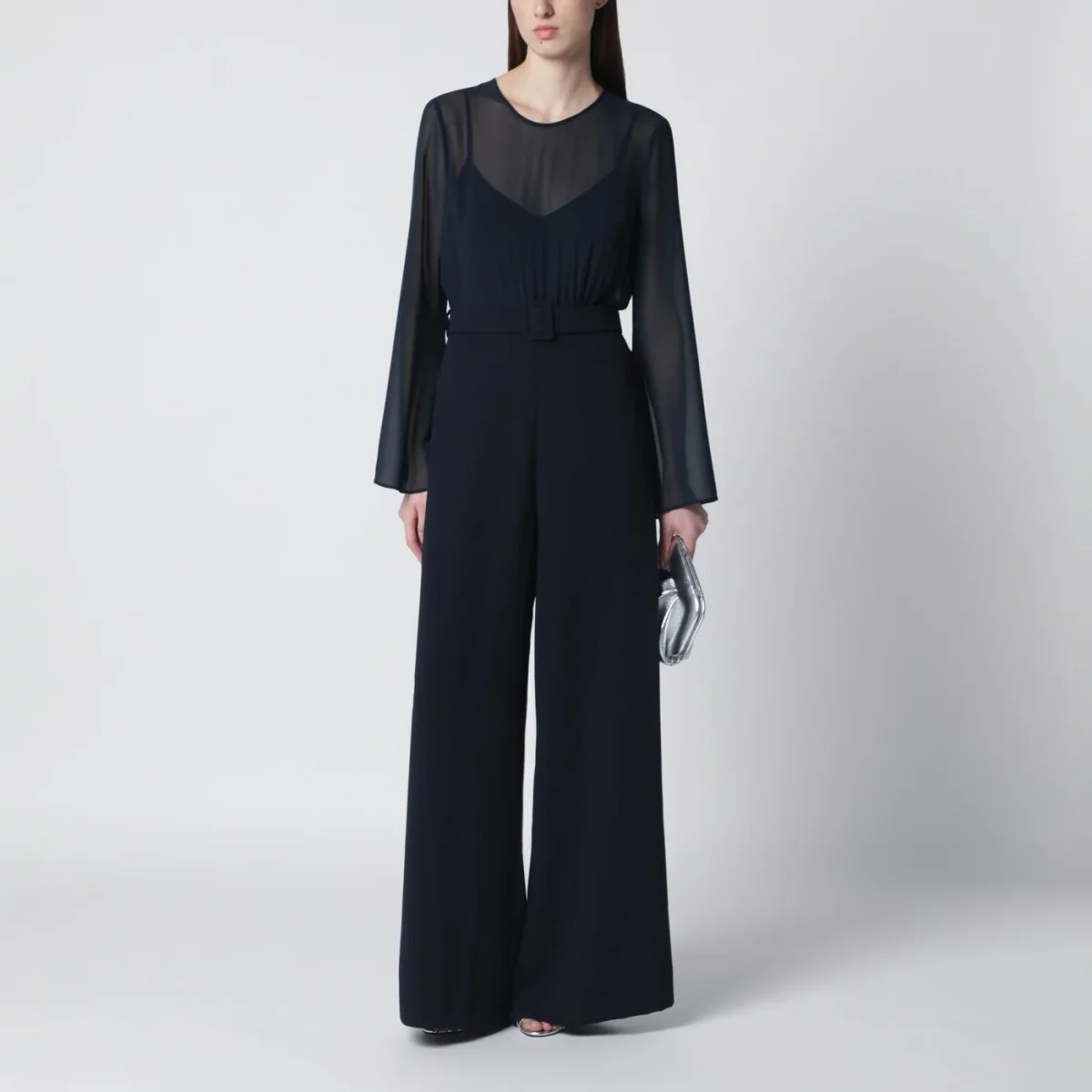 Tuta girocollo di PAROSH blu• maniche lunghe• cintura abbinata in vita regolabile• chiusura con bottone sul retro• design semitrasparente con sottoveste con spalline• pantalone a gamba ampia