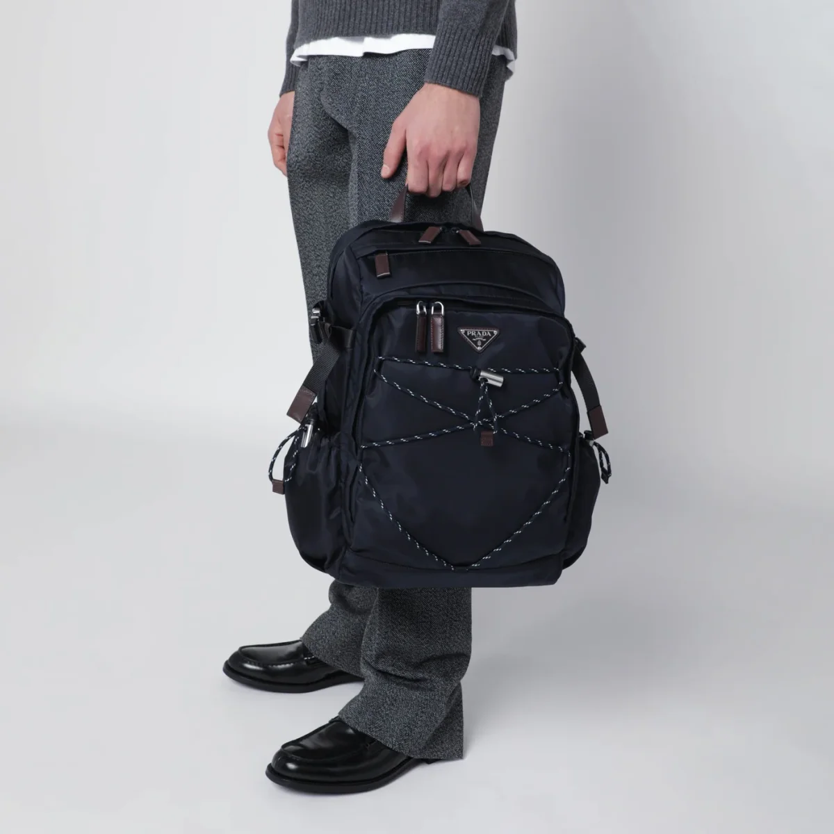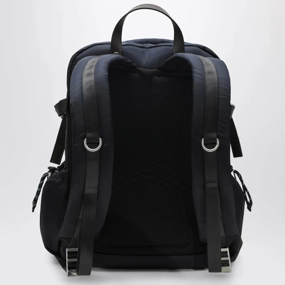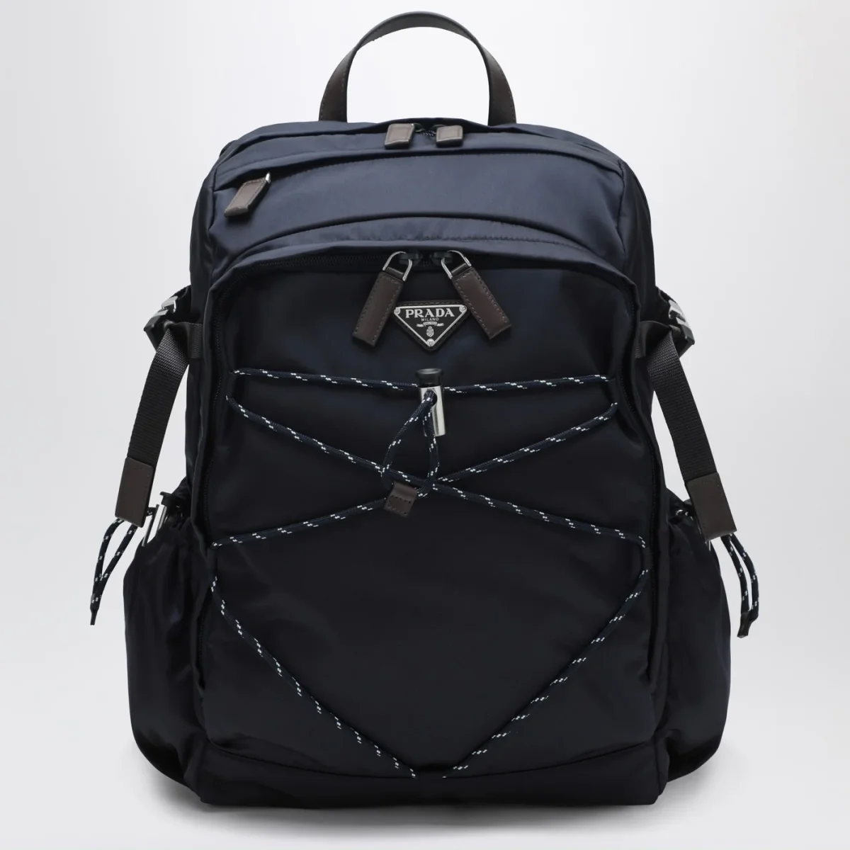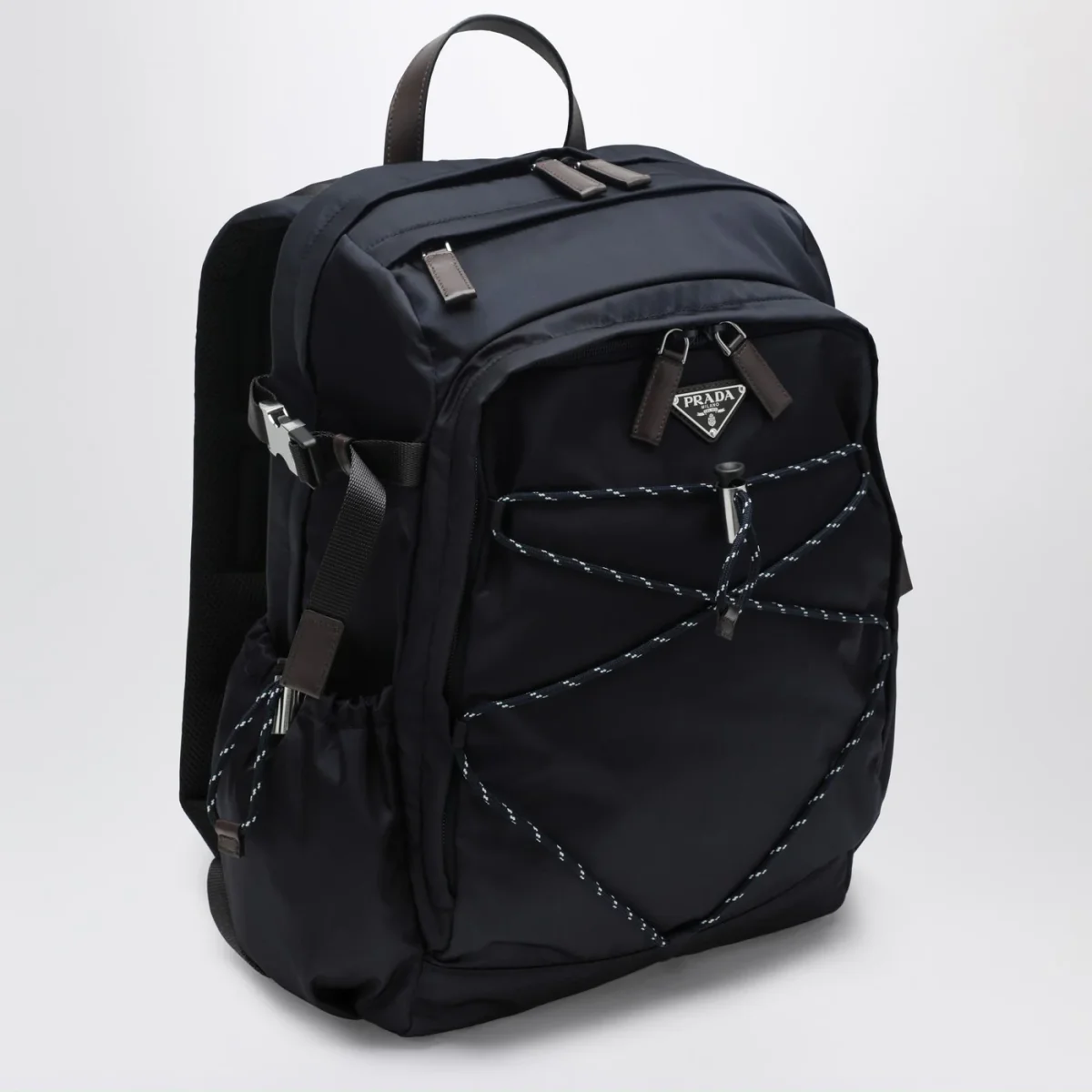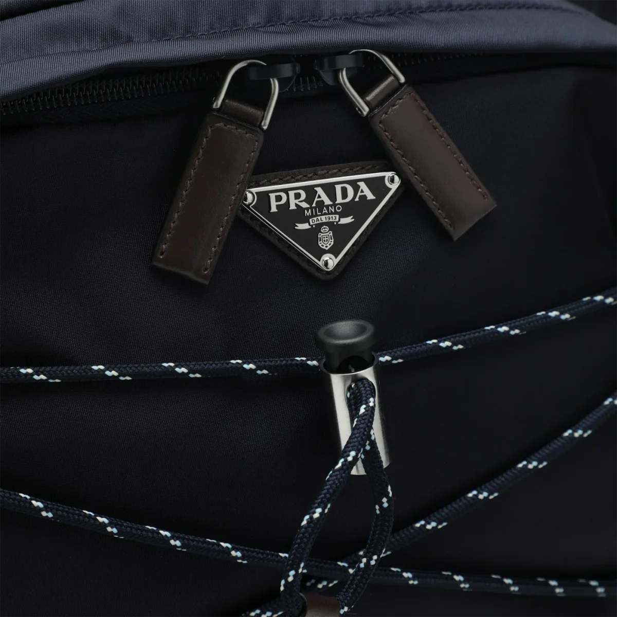 Zaino di Prada in Re-Nylon blu• cordino tecnico regolabile• manico piatto in pelle• bretelle regolabili in tessuto• logo triangolo in metallo smaltato su davanti• chiusura con zip• tre tasche esterne con zip• una tasca porta bottiglia con coulisse• schienale in tessuto a rete imbottito• interno con tasca zip e una tasca applicata• fodera in Re-Nylon